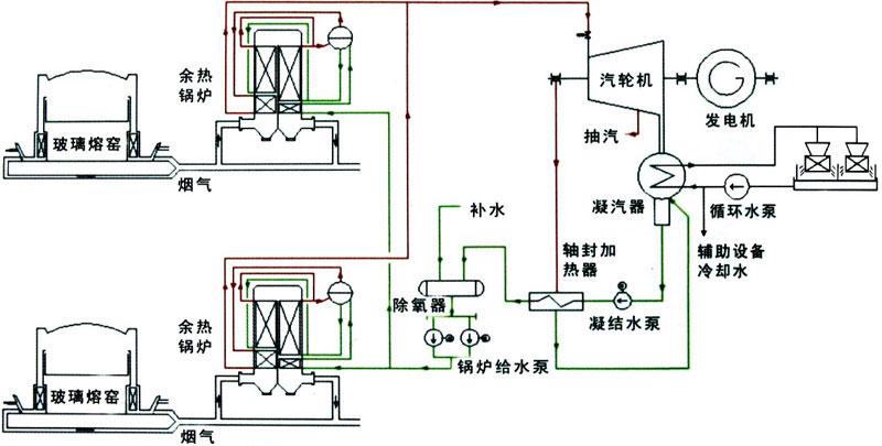 配套余熱大點(diǎn)系統(tǒng)后,可提供玻璃生產(chǎn)用電的40%-80%,大幅提高燃料利用率,降低玻璃的生產(chǎn)電耗。