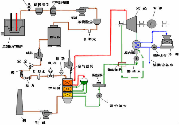 全封閉礦熱爐煤氣回收發(fā)電流程圖