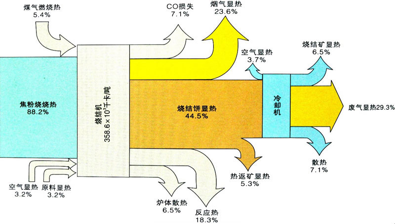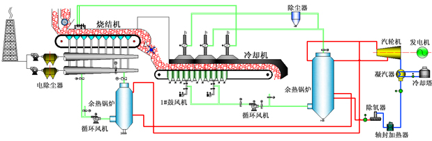 煉鐵燒結(jié)過程消耗大量的能量,約占冶金總能耗的10-12%,而其中有近50%的熱量以燒結(jié)機(jī)煙氣和冷卻機(jī)廢氣的顯熱形式排入大氣,既浪費(fèi)能源又污染環(huán)境。