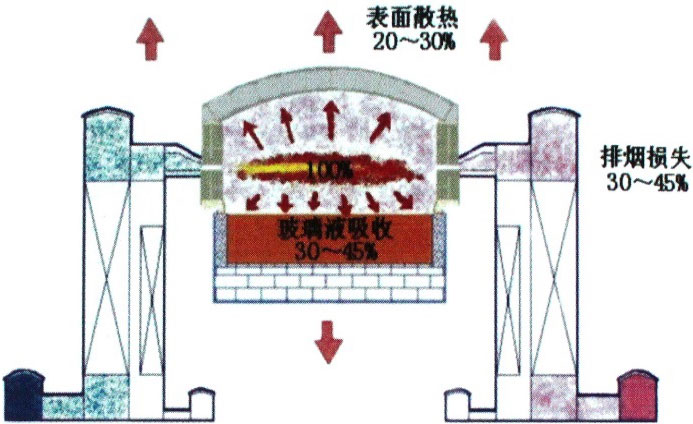玻璃熔窯是浮法玻璃生產(chǎn)工藝中發(fā)生能量交換的主要場所,燃料的燃燒、玻璃液的形成、澄清及均化都在窯內(nèi)完成,從熔窯排出的煙氣溫度為400-550℃,攜帶的熱量約占生產(chǎn)總熱耗30-45%,具有很大的回收價(jià)值。
