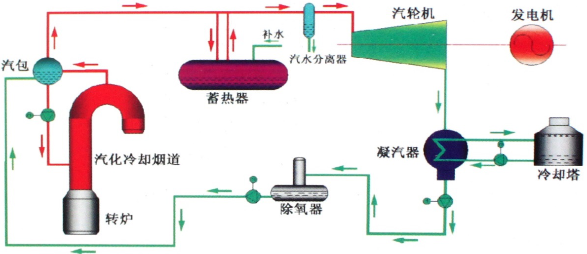轉(zhuǎn)爐煉鋼是鋼鐵冶煉過程中的重要環(huán)節(jié),該工序可回收的能源主要包括:轉(zhuǎn)爐煤氣和蒸汽。但是轉(zhuǎn)爐煙道產(chǎn)生的蒸汽具有周期性、不連續(xù)、壓力低、濕度大等特點(diǎn)。